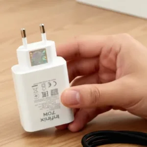 The Infinix 70W Charger Adapter + iPhone Cable Combo is a practical charging bundle for users who want both a charger adapter and cable in one deal. It is suitable for daily use at home, in the office, during travel, or as a backup charging setup.